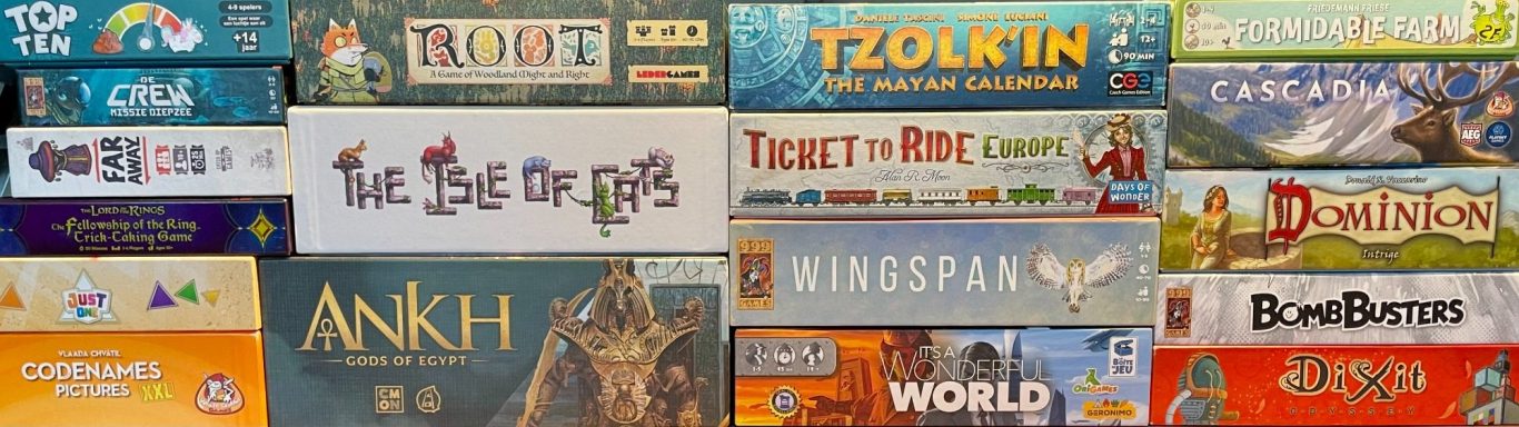 Geen avond verloopt hetzelfde, de groep beslist gezamenlijk wat er op tafel komt. We nemen zelf onze eigen bordspellen mee, elke avond is er weer een ander aanbod. Bekende spellen die op tafel zijn gekomen zijn bijv. Wingspan, Bomb Busters, Cascadia, Hogwarts Battle, Dixit, Dead of Winter, Hitster, Munchkin, Isle of Cats, the Catles of Burgundy. De keuze is enorm, kijk ook eens bij de Fotogalerij voor voorbeelden.